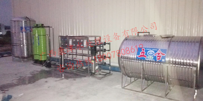 工藝流程:原水箱-原水泵-石英砂過(guò)濾器-活性炭過(guò)濾器-精密過(guò)濾器-反滲透設(shè)備-水池