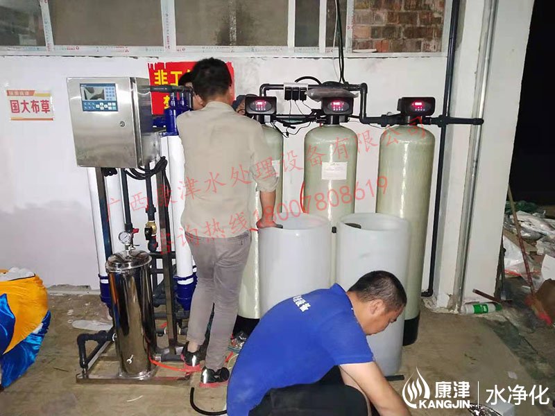 工藝流程:井水-原水箱-石英砂過濾器-活性炭過濾器-超濾-軟化水-凈水箱