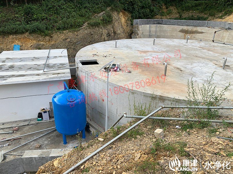 工藝流程:山泉水-絮凝投加器-石英砂過濾器-二氧化氯加藥器-用水點